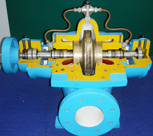 产品概述: S、SH型单级双吸泵壳中开之离心泵,供抽磅清水或物理化学性质类似于水的其它液体之用。被输送液体温度不得高于80℃。适用于工厂、厂矿、城市给水、电站、农田排灌和各种水利工程。结构说明 本型泵的吸入口与吐出口均在水泵轴心线的下方,与轴线垂直成水平方向。检修时无需拆卸进出口水管及电机。从传动方向看去,水泵为顺时针方向旋转(根据用户需要亦可改为逆时针方向旋转)。 泵主要零件有:泵体、泵盖、叶轮、轴、双吸密封环、轴套等。 泵体与泵盖构成叶轮的工作室。在进出水法兰上,制有安装真空表和压力表的管螺孔。进出水法兰的下部,制有放水的管螺孔。 经过静平衡校验的叶轮,用轴套和两边的轴套螺母固定在轴上,其轴向位置可通过轴套螺母进行调整。 泵轴由两个单列向心球轴承支承。轴承装在轴承体内、安装在泵体两端,用黄油润滑。 双吸密封环用以减少水泵压水室的水漏回吸水室。 泵通过弹性联轴器由电动机直接传动,必要时亦可用内燃机传动。 轴封为软填料密封(根据用户需要可采用机械密封结构)。