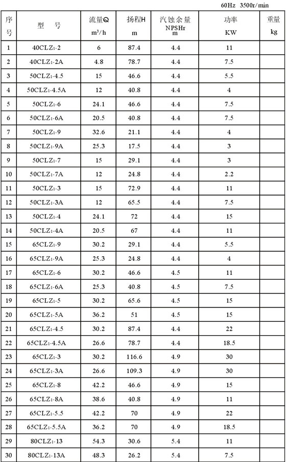 二、型号说明: 40CLZ—4.5A 40—泵进出口直径 CLZ—船用立式自吸离心泵 4.5—比转数的—110
