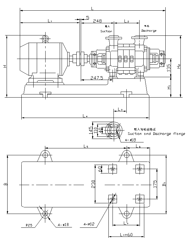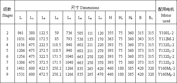 泵的进出口方向均垂直向上,为根据所需扬程选用不同级数。