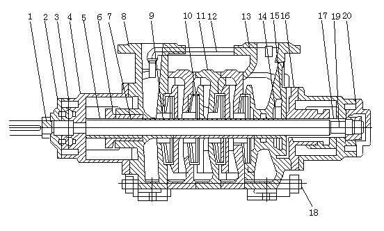 泵的转子部分由轴、叶轮、轴套和平衡盘等零件组成,两端支撑在滚珠轴承上。